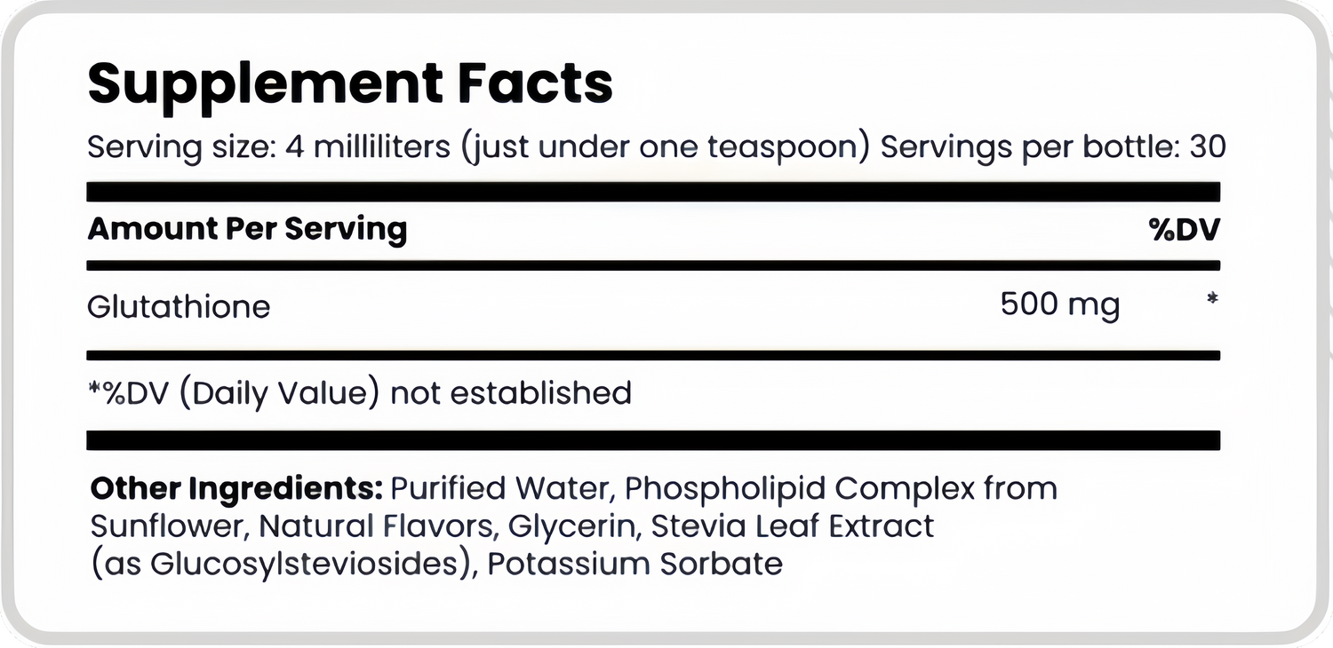 I take a teaspoon of Liposomal Glutathione in the evening to help support my body's natural detoxification, promote deep restorative sleep, and strengthen my antioxidant defenses for cellular recovery.