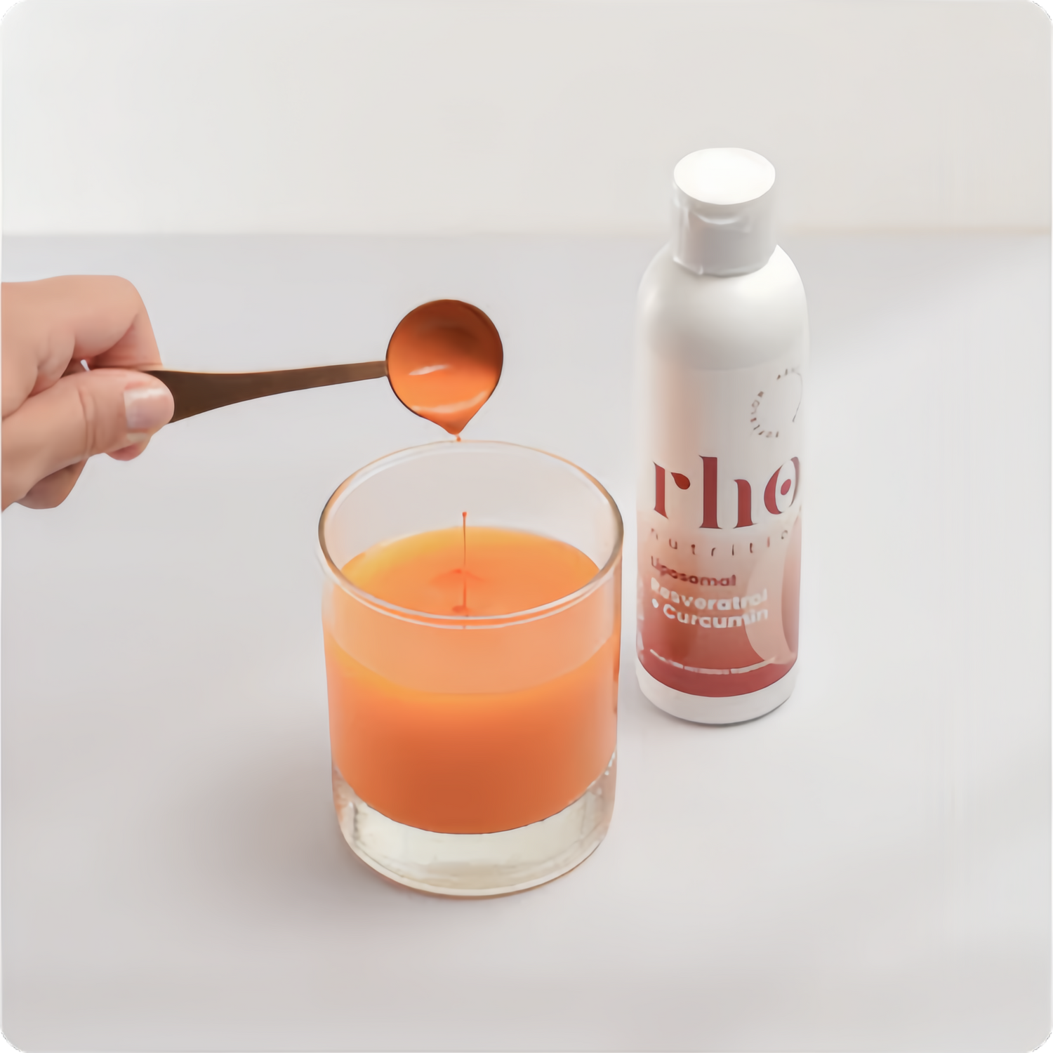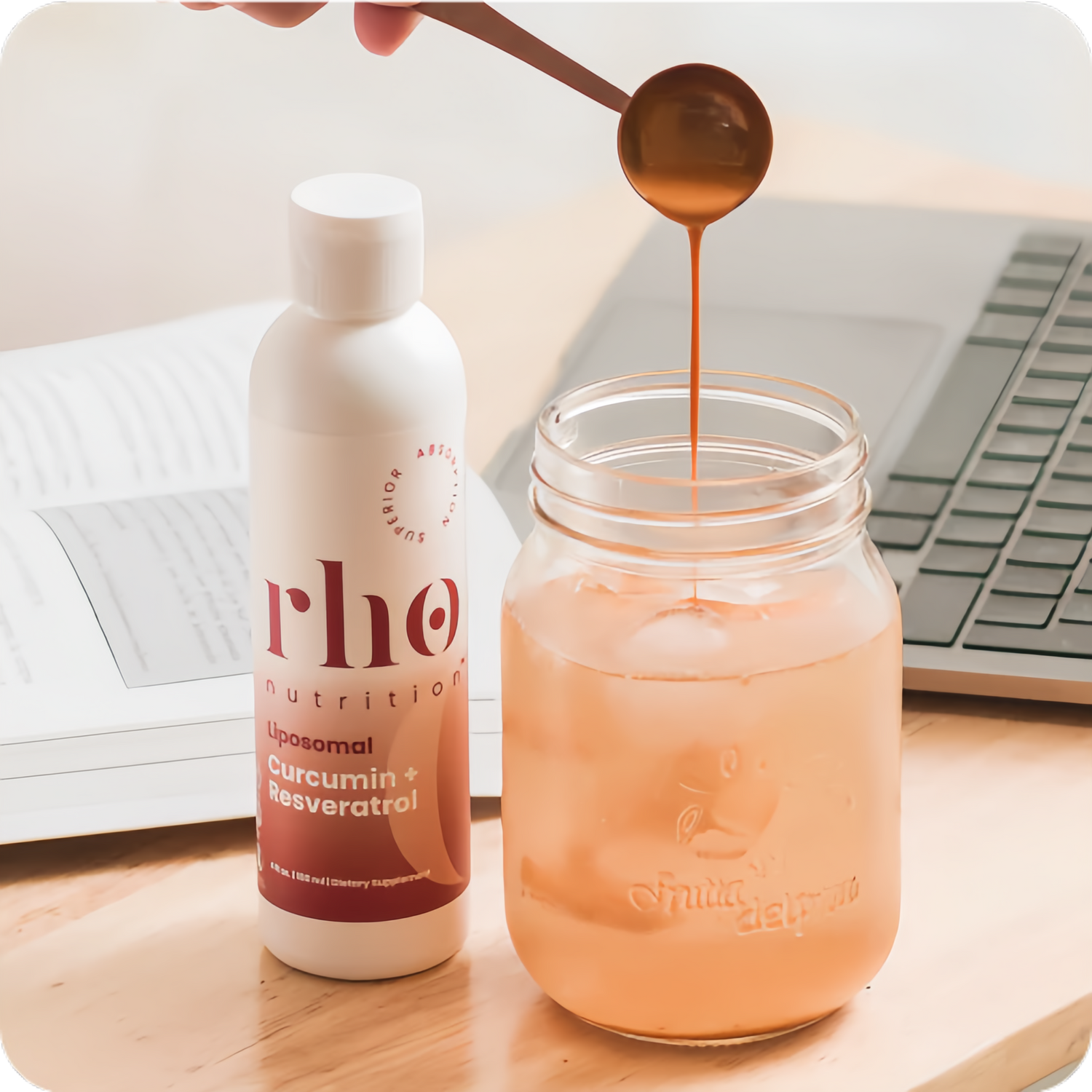 I take a teaspoon of Rho Curcumin + Resveratrol in the afternoon to help support a healthy inflammation response, improve my immune system and support healthy aging on a cellular level.